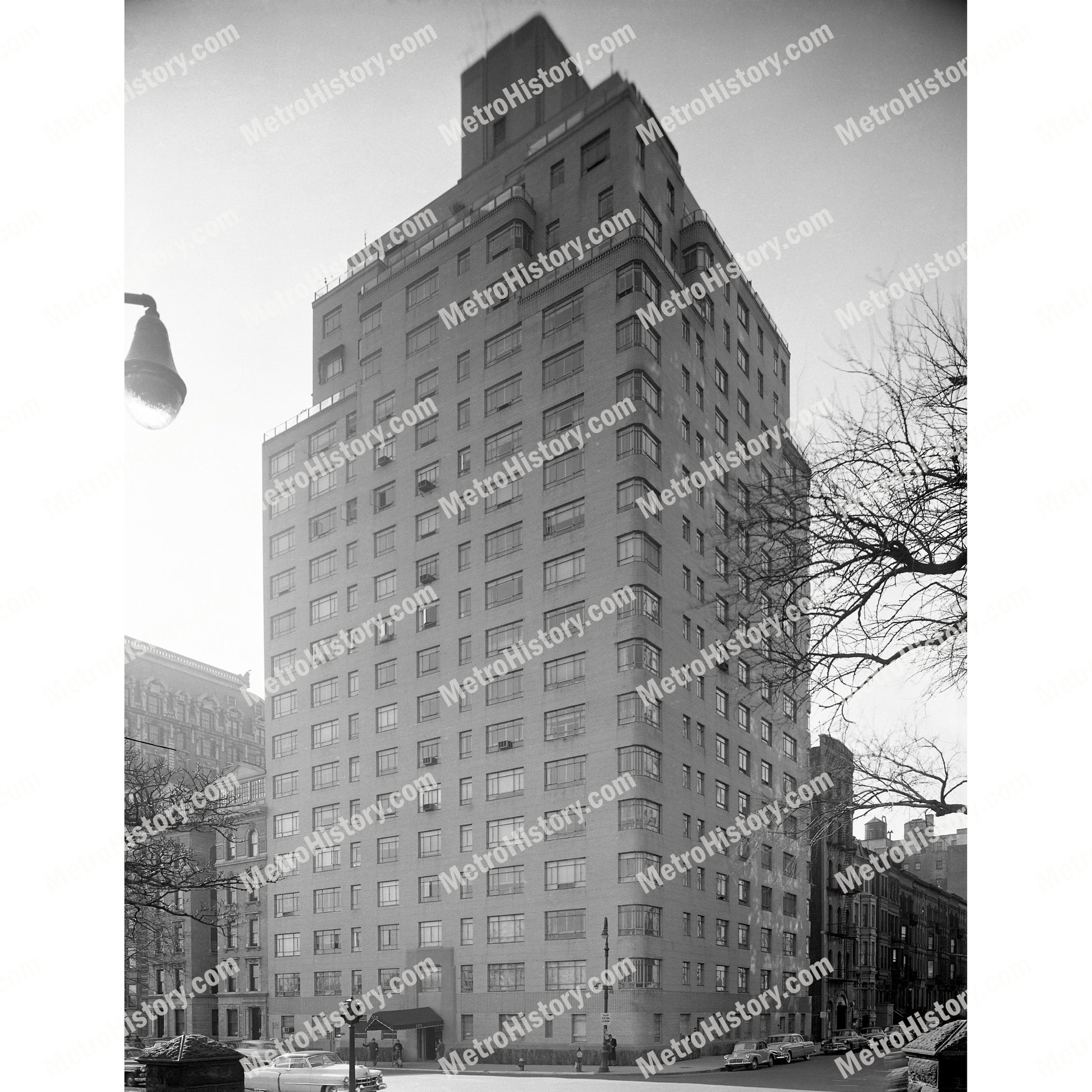 1954 photograph of 295 Central Park West at southwest corner of West 90th Street in Manhattan, New York City.