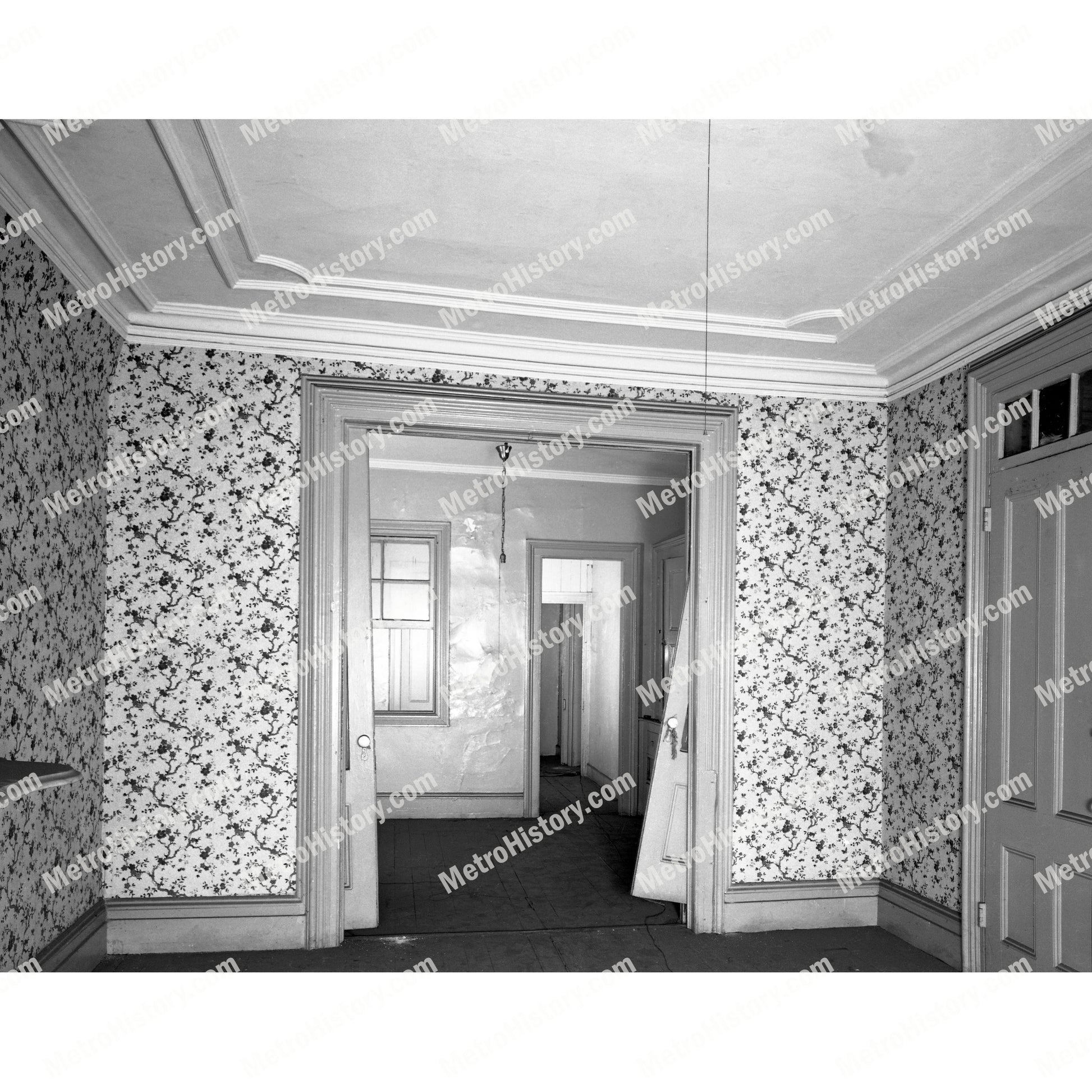 1936 photograph of front room interior at 328-334 Eighth Avenue on east side of Eighth Avenue between West 26th Street and West 27th Street in Manhattan, New York City.